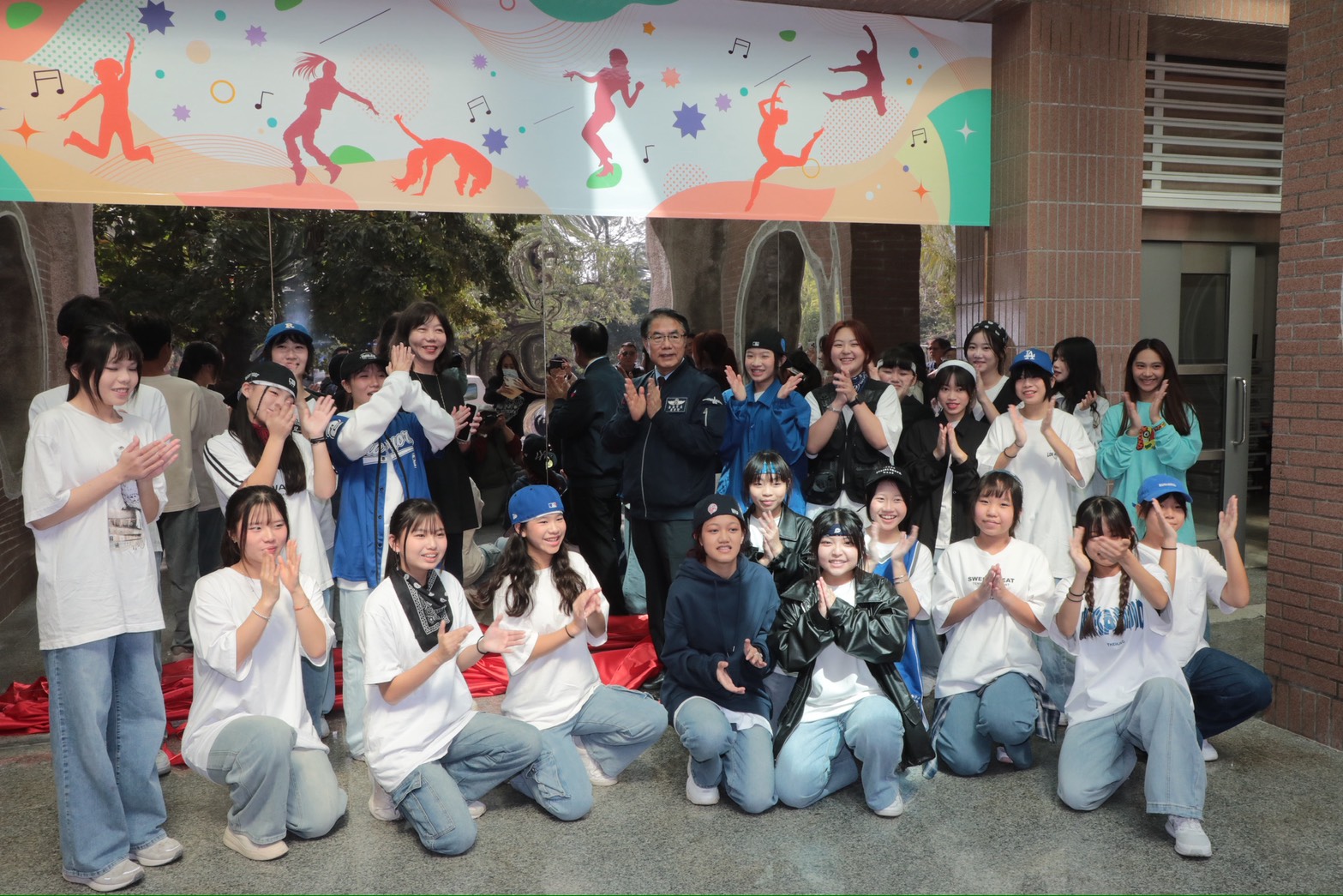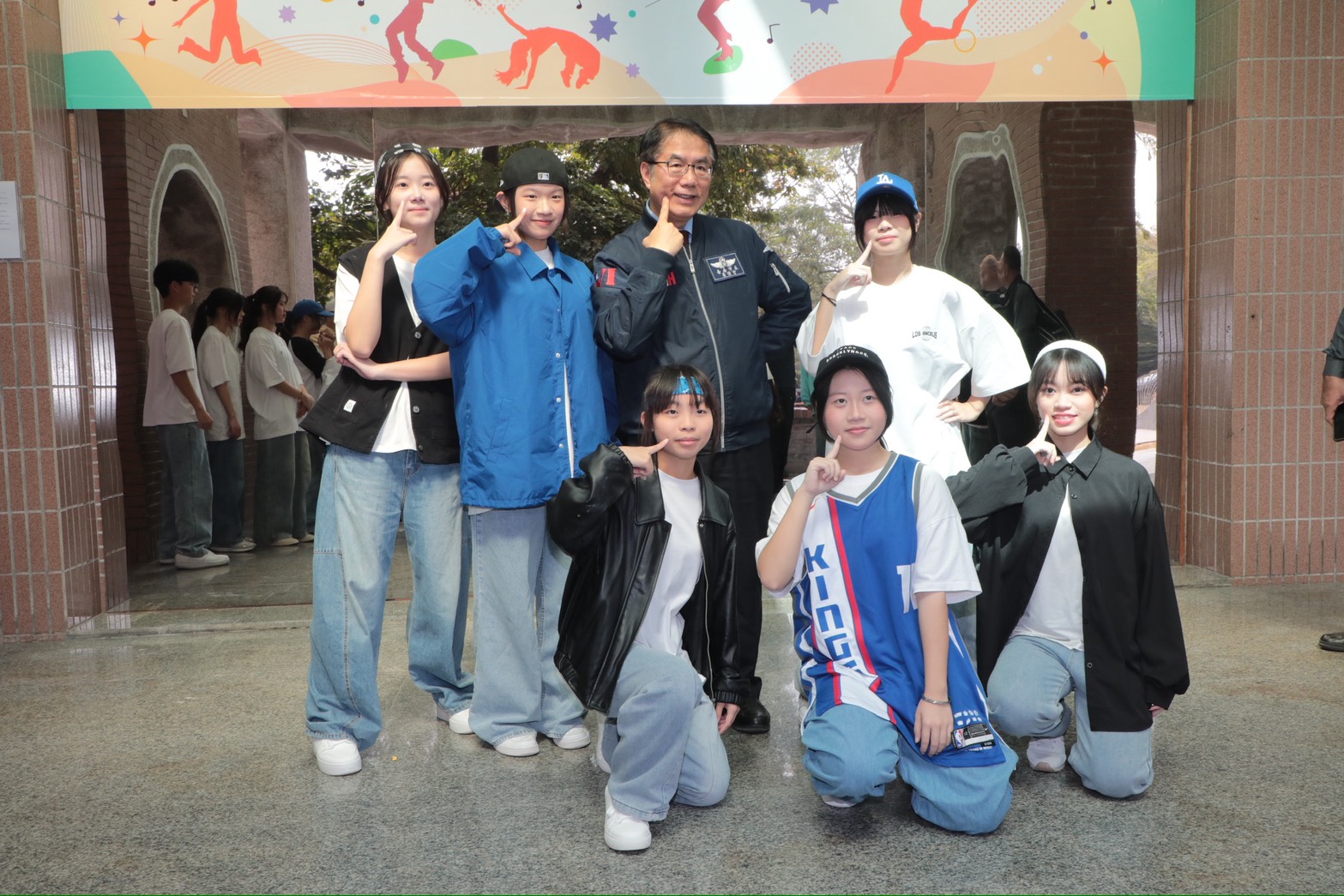 ▲市長黃偉哲與新豐高中、長榮女中、黎明高中、歸仁國中、黎明國中等校熱舞、街舞社學生一同「開箱」練舞場。(新聞處 提供)