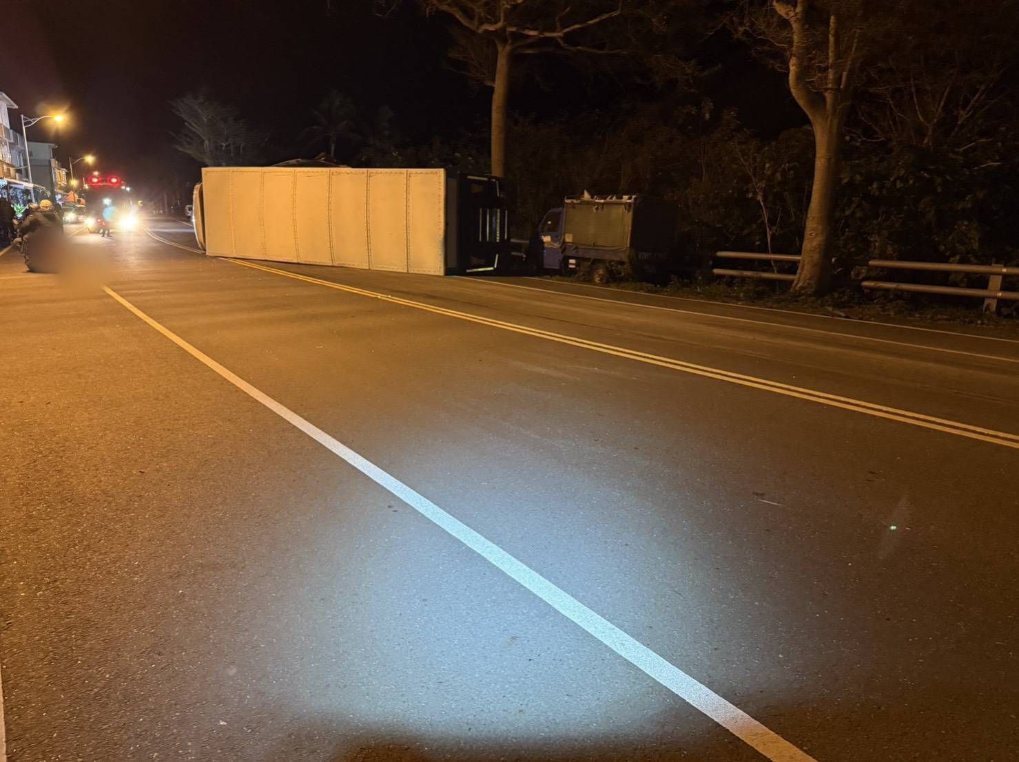 台東台11線大貨車肇事! 擦撞停路邊7輛車翻覆駕駛受傷